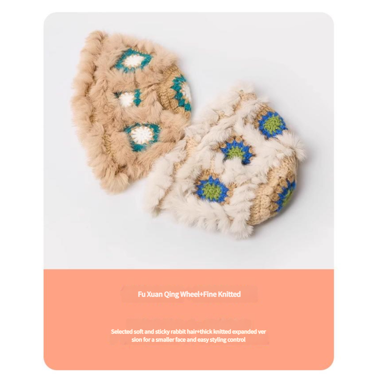 Plush Floral Bucket Hat - Warm Crocheted Winter Hat 55-59cm