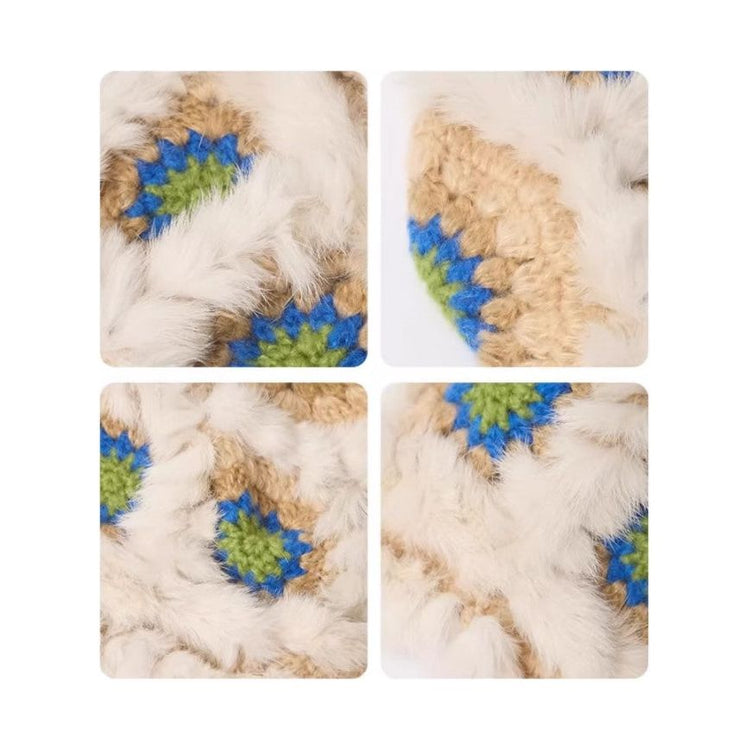 Plush Floral Bucket Hat - Warm Crocheted Winter Hat 55-59cm