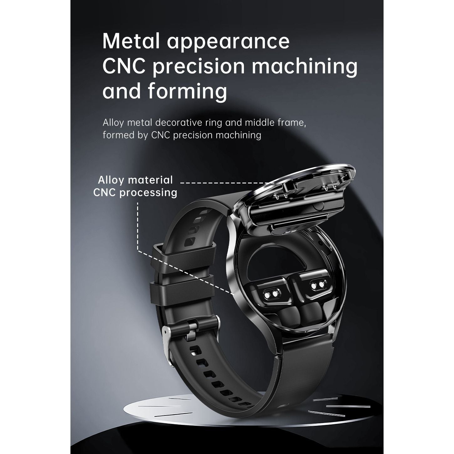 2-in-1 Smartwatch with Built-in TWS Earphones - IP67 Waterproof, Health Monitoring & CNC Metal Design