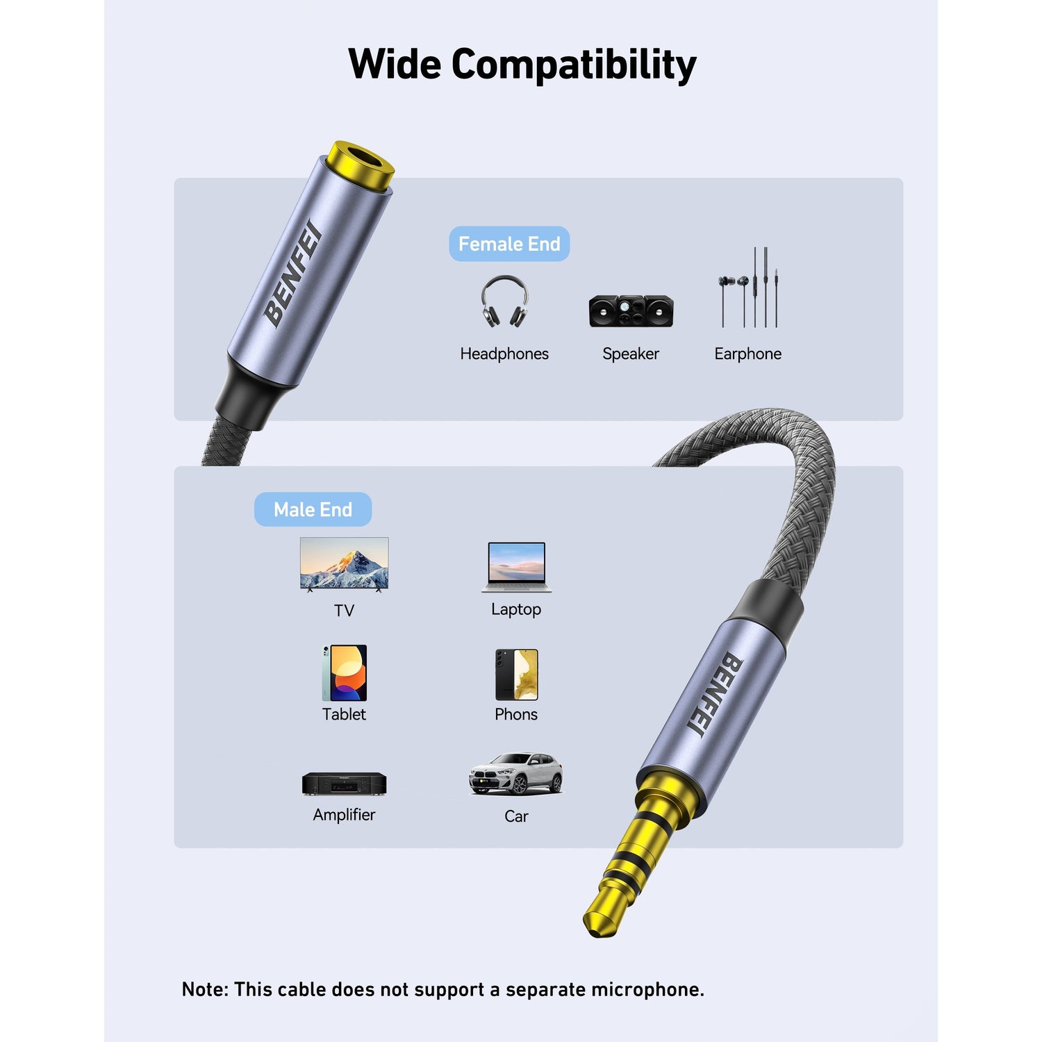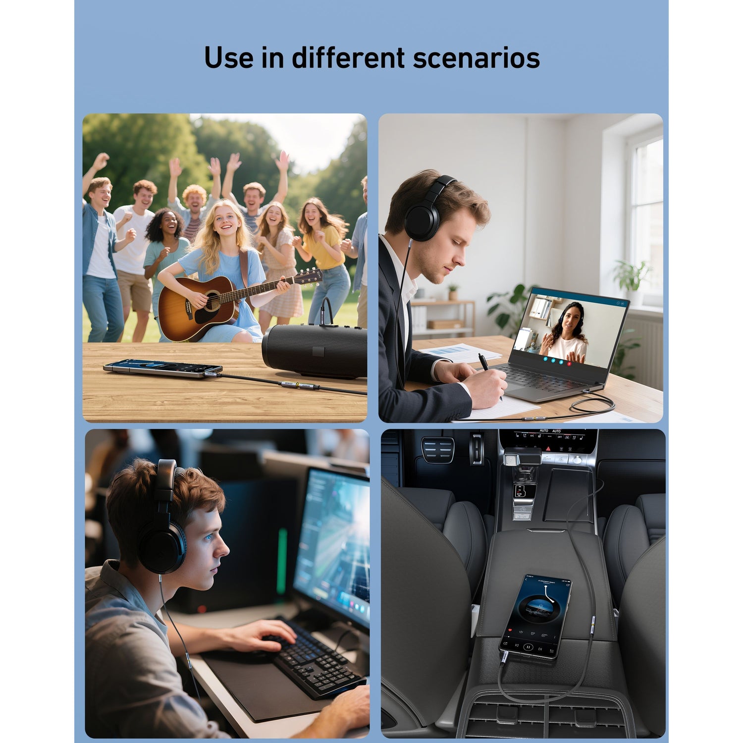 Compatible with all devices featuring a 3.5mm port, including headphones, smartphones, tablets, PCs, laptops, speakers, car stereos, and more.