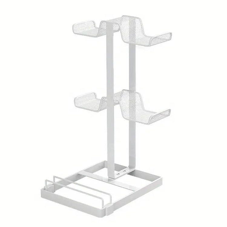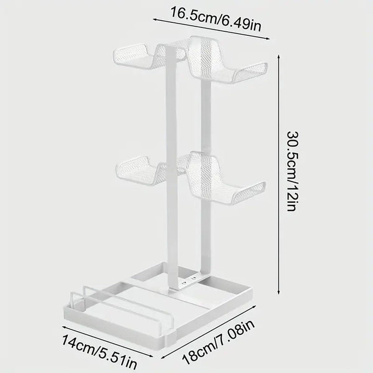 Organise your gaming setup with this versatile Metal Desktop Stand.Designed to hold headphones, gamepads, and game consoles, this stand keeps your accessories within reach and neatly arranged.With its robust metal structure, it supports multiple items securely, making it ideal for gamers who value both functionality and style.Available in sleek black and white finishes to complement any gaming station