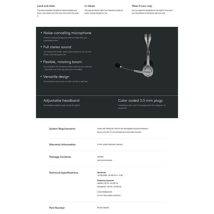 Frequency response: Headset: 20Hz-20,000Hz Microphone: 100Hz-16,000Hz