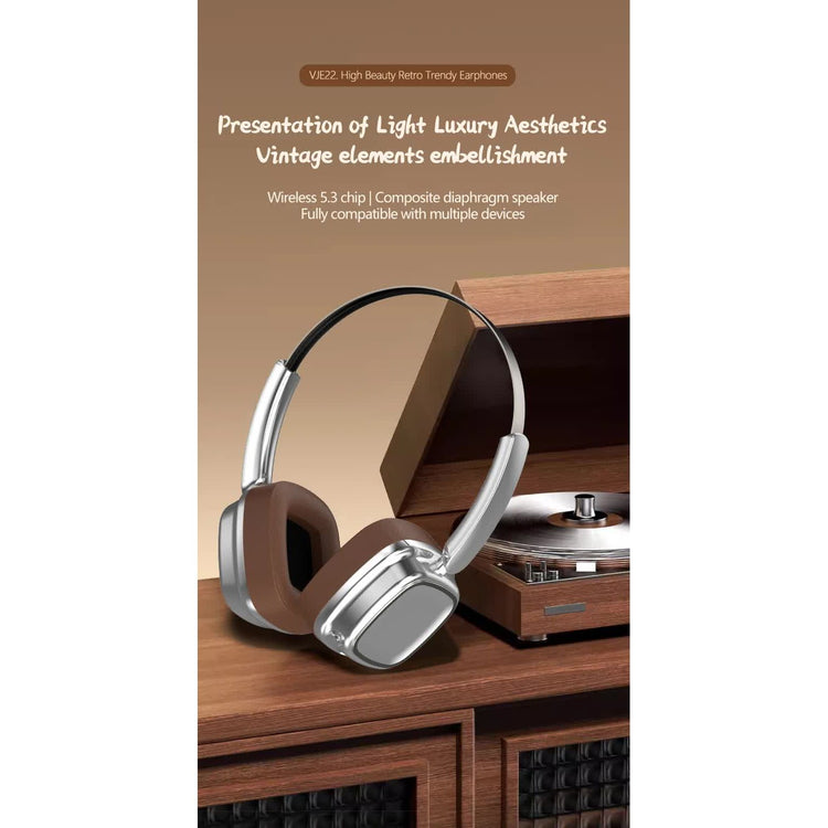 Retro Wireless Bluetooth 5.4 Headphones - Over-Ear, Deep Bass, Compact