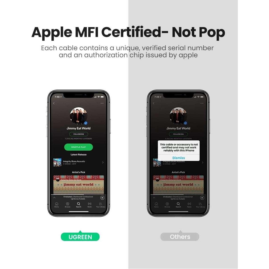 UGREEN 3.5mm iPhone 8-pin adapters are certified by Apple to meet rigid iPhone requirements and ensure completely and securely connect with your Apple devices.