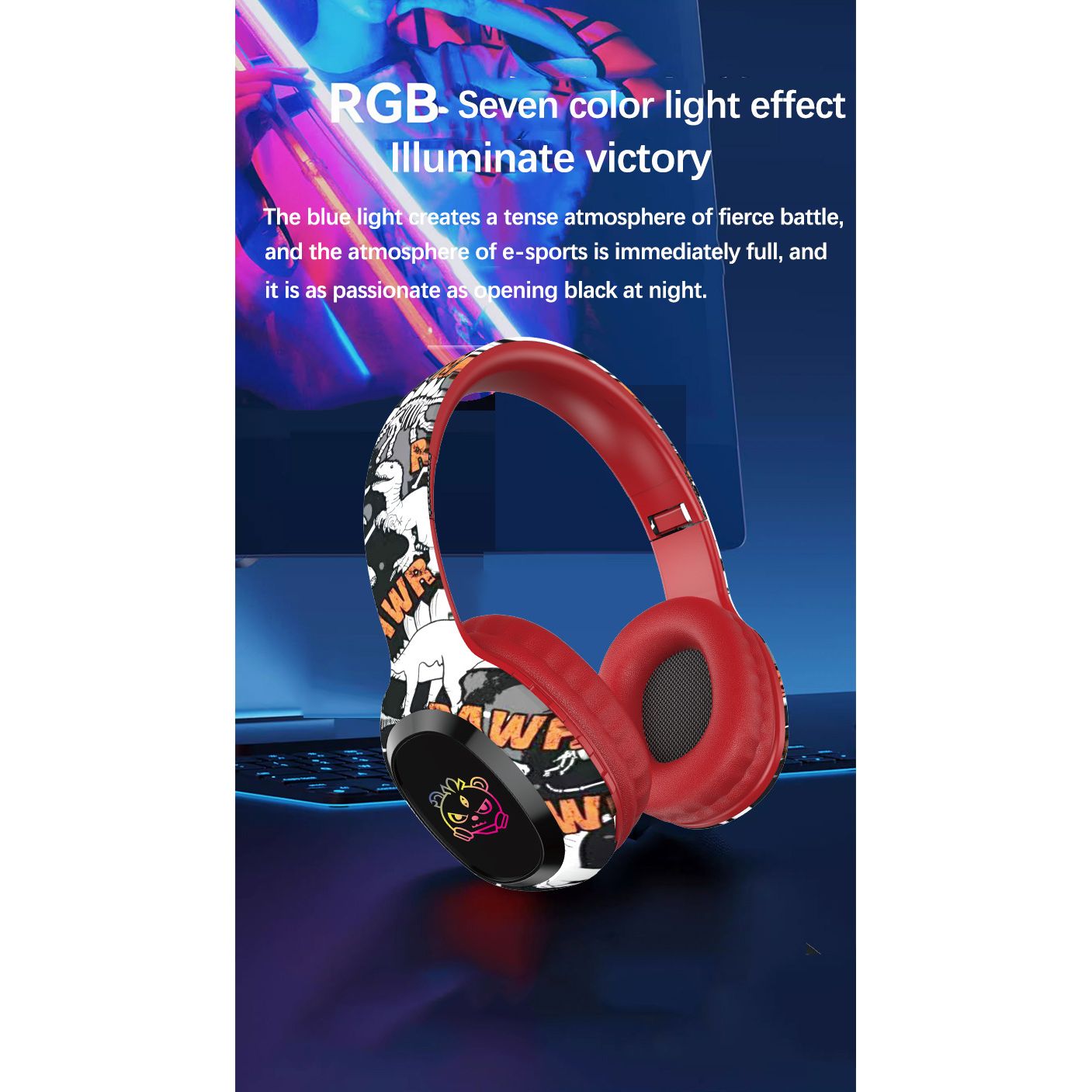 Wireless Over-Ear Headphones with Graffiti Design - Bluetooth 5.3, HIFI Sound, RGB Light, 8H Playtime