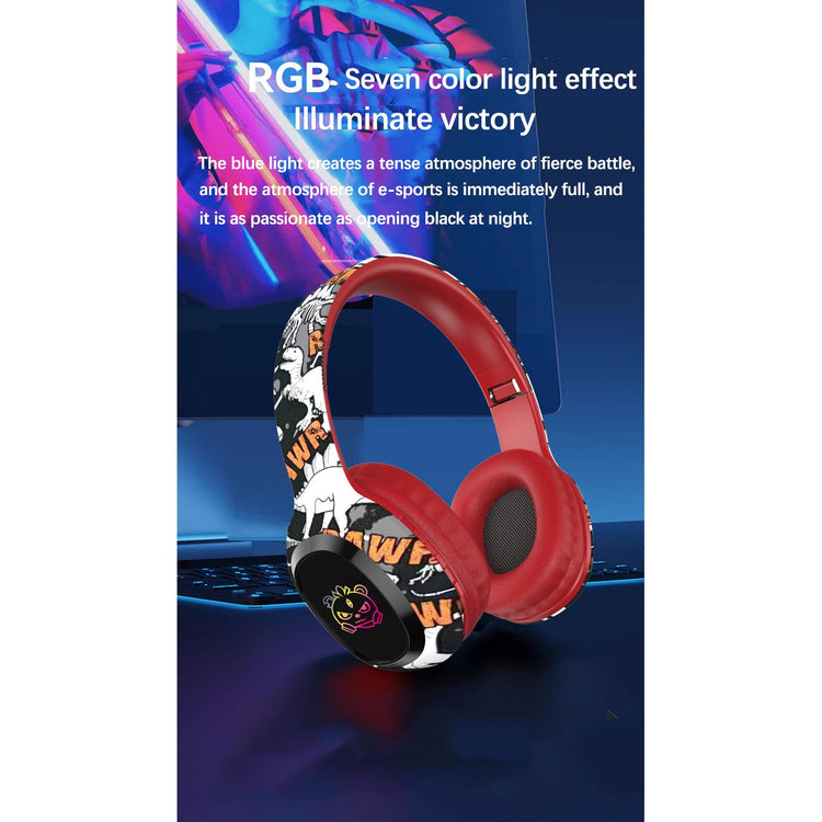 Wireless Over-Ear Headphones with Graffiti Design - Bluetooth 5.3, HIFI Sound, RGB Light, 8H Playtime