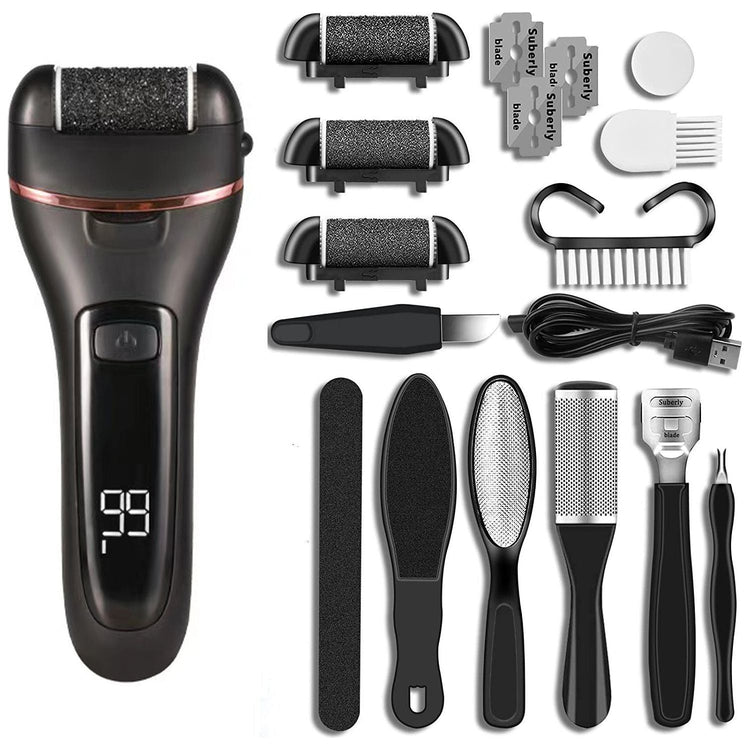 Black 10 Pcs Suit Electric Foot Callus Remover with LCD Display | Waterproof Pedicure Set | Dual-Speed Dead Skin Exfoliator for Smooth Feet