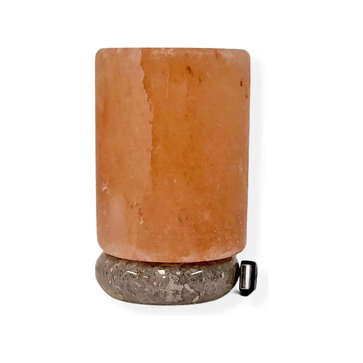 USB Himalayan Salt Lamp - Cylinder Carved Shape Pink Crystal Rock LED Light