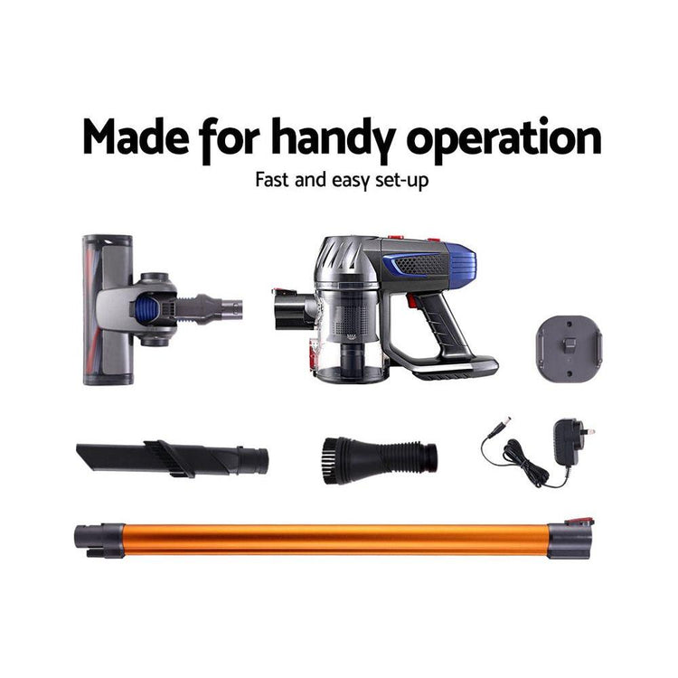 Our Devanti Handstick Vacuum Cleaner gives you the freedom to use it in any tight space or where spot cleaning needs to be done without lugging a big machine behind. Its powerful 150W 30000rpm motorised head has a steady suction power of up to 10000Pa and comes with two-speed suction for more vacuuming options. The 160 degree swivelling head can also be fitted with brush or crevice nozzles for different types of surface and zone cleaning that allows it to pick up dirt and debris easily. That makes the vacuum ideal for cleaning carpets, curtains, shelves, soft furnishings, vehicle interiors and delicate objects as well as vacuuming ceiling, corners, niches and gaps. The one-handed design is lightweight and bagless. All collected dirt and debris pass through a washable and reusable HEPA filter that eliminates up to 99.97% of dust and allergens. Not least, the vacuum cleaner can work its magic for up to 35 minutes of continuous running time on low speed (25 minutes on high speed) with the rechargeable 2000mAh lithium-ion battery.
