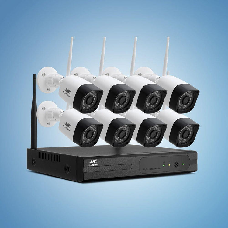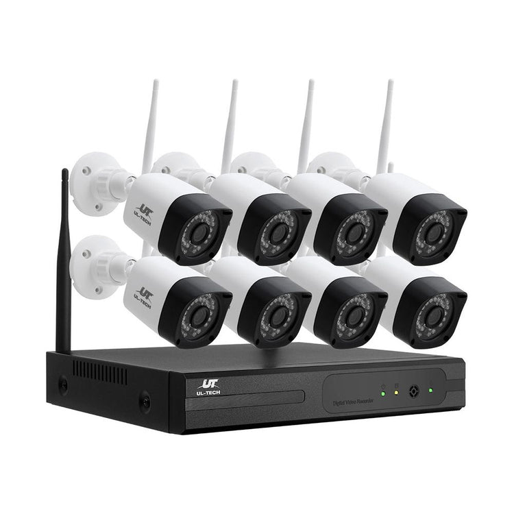 Take control of your home security with this easy-to-install, UL-TECH wireless CCTV system. Featuring 3MP full HD cameras and a weatherproof (IP66) design, it delivers clear day and night vision for optimal monitoring, indoors or outdoors. Connect the 8-channel NVR wirelessly for a truly plug-and-play experience, and access live footage or recordings from anywhere using your smartphone or computer with free apps. Never miss a thing with customisable motion detection and intelligent alerts, and enjoy peace of mind knowing your data is protected during a power outage. This comprehensive system includes high-resolution cameras with built-in IR cut for superior night vision, along with HDMI and VGA outputs for connecting to a monitor. Record footage locally or leverage cloud storage for remote access (additional subscription may be required). Plus, capture and record directly on your smartphone for added convenience. This system comes with a bonus USB mouse and supports simultaneous live viewing of all 8 channels on your smartphone. Enjoy complete security and peace of mind with this feature-packed wireless CCTV system.