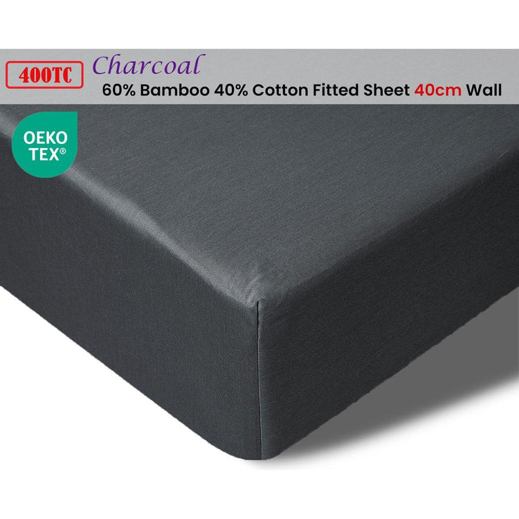 Accessorize 400TC Charcoal Bamboo Cotton Fitted Sheet 40cm Wall Single