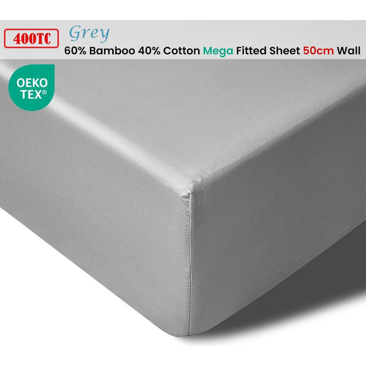 Accessorize 400TC Grey Bamboo Cotton Mega / Super Fitted Sheet 50cm Wall King