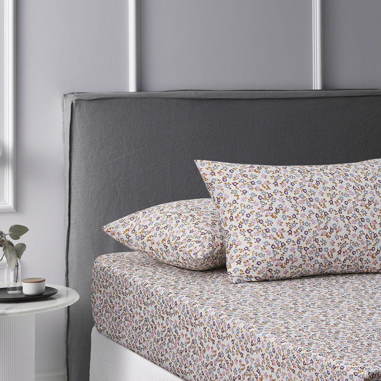 Refresh your bed with our Lisa Ochre Washed Cotton Printed Fitted Sheet Set by Accessorize. This set features our gorgeous Lisa print. Washed cotton has a comfortable relaxed look whilst retaining a crisp, smooth feel of cotton, ensuring you that perfect night's sleep. It features floral design printed in white, sky, ochre, orange, blue, lilac, and pink colour tones. It is made from quality and soft touch cotton fabric for all night long comfort.
