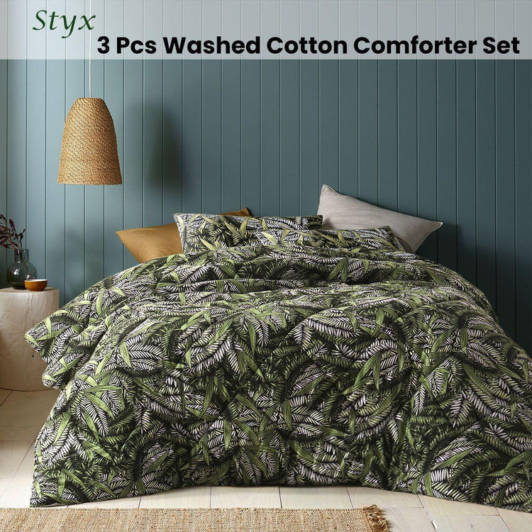 You will thank yourself a hundred times over for buying this great digital printed Styx Washed Cotton Printed 3 Piece Comforter Set by Accessorize. Refusing to compromise on design, comfort, and especially affordability, this comforter set is certain to provide you with all-year-round comfort and warmth. It features foliage design printed in white, green, and black colour tones. Made from soft touch and quality 100% Cotton fabric and Polyester fill.