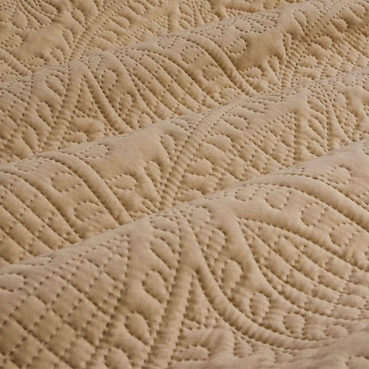 The Chateau Cinnamon Light Quilted Embossed Quilt Cover Set by Ardor features an intricate petal pattern embossed into the light cinnamon front of this quilt cover set, elevating your bedroom decor to modern sophistication. Chateau has a light weight fill with plain dyed reverse. Perfect for year-round comfort. It is made from quality and soft touch microfiber with polyester fill.