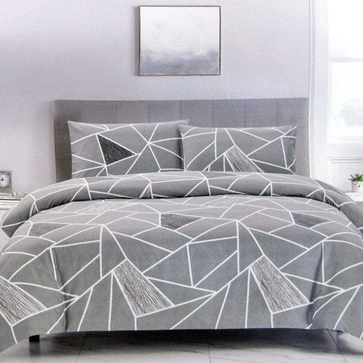 Artex Bentley Grey Quilt Cover Set Geometric Pattern Reversible Printed Microfiber Polyester King