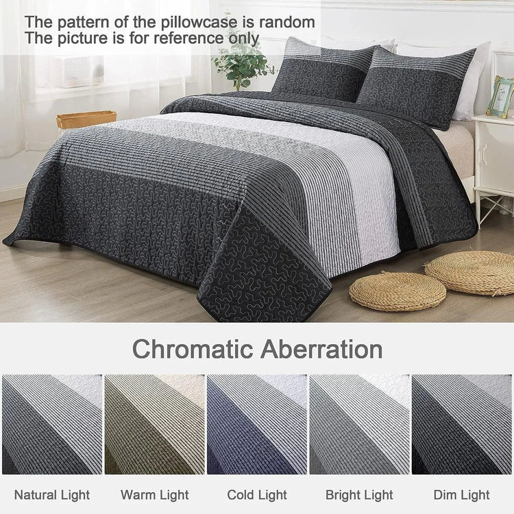 Detailed Quilted Bedspread and Pillowcases Set: A Signature of Quality and Style-Queen