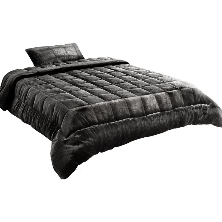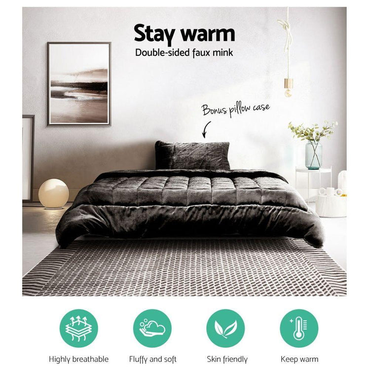 Experience exquisite luxury and warmth with the Giselle Bedding Faux Mink Quilt. With its high-density 300gsm polyester filling and 200gsm cover, the doubled-sided quilt is soft to the touch and well-padded for comfort. Its baffle box design ensures a premium feel and no leakages with its meticulous needlework. The quilt is also thermo-regulating to provide warmth always and its winter weight makes it a perfect choice for those windy days and chilly nights. Plus, the silvery sheen brings out the chic factor of this wonderful faux mink quilt that transforms an ordinary bed to an elegant one. Better still, the quilt also comes with matching pillowcases to complete the lovely set. Not least, the quilt and pillowcases are machine washable and suitable for myriad uses where a warm and cosy experience is much appreciated.