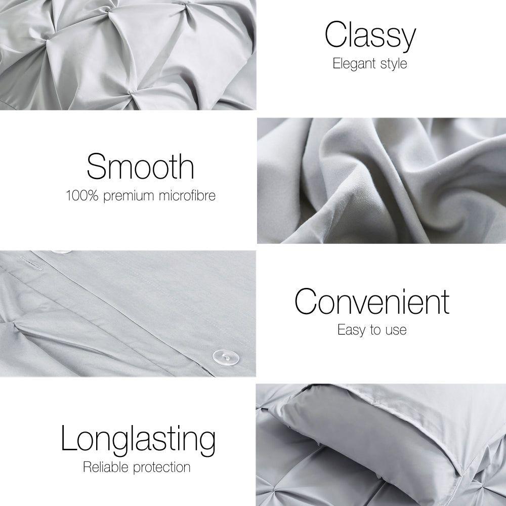 Add a touch of chic to your bedroom with the delightful Giselle Bedding Diamond Pintuck 3-piece Duvet Set. Adorned with pin tucks and diamond pleated details, the 100% microfibre bedding comes in an array of colours and sizes to bring a fashionable look to your bedroom decor . Plus, it is also an easy and inexpensive way to create a focal point in your bedroom that speaks volumes of your fine taste and discerning style.