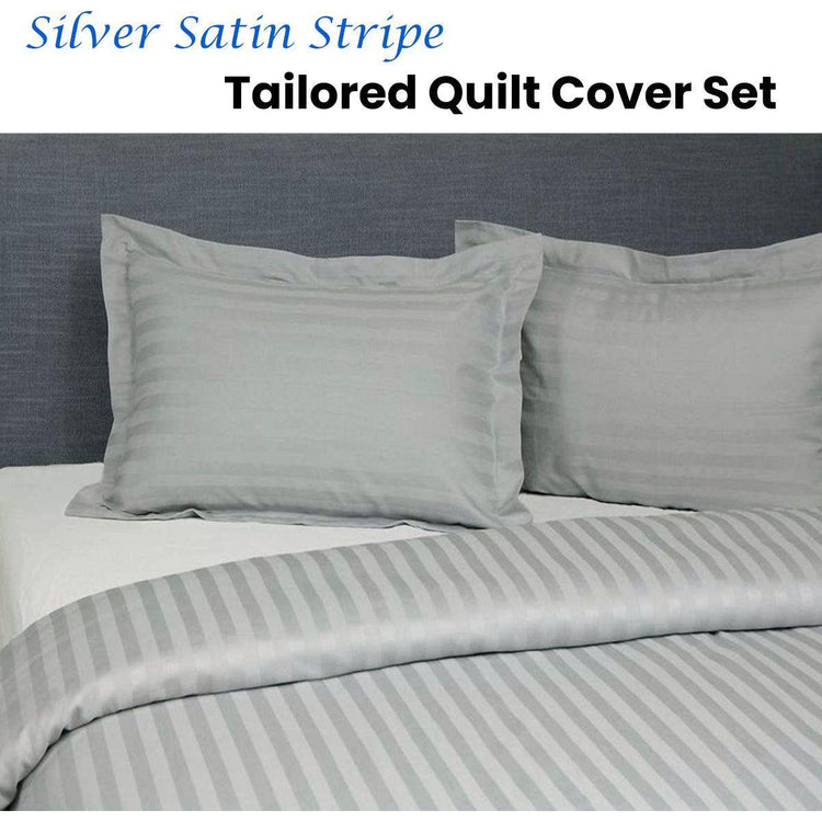Jason Silver Satin Stripe Tailored Quilt Cover Set King