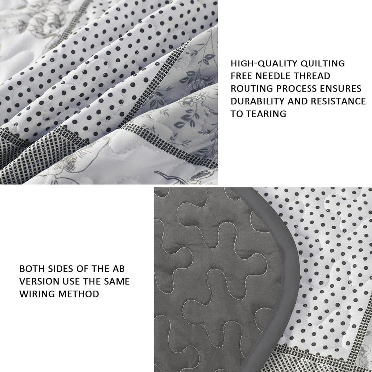 Transform your bedroom into a cozy retreat with our 3-Piece Quilt Bedspread Sets Queen Size Coverlet Lightweight Reversible. This elegant set combines comfort and style, making it the perfect addition to any bedroom decor. Specifications: **Queen Size:** - Bedspread: 230 cm (width) x 250 cm (+/-4 cm) - Pillow Cases: 48 cm x 74 cm (+/-4 cm) **King Size:** - Bedspread: 240 cm (width) x 260 cm (+/-4 cm) - Pillow Cases: 48 cm x 74 cm (+/-4 cm) **Material:** Crafted from 100% Polyester for a soft and durable feel. **Gross weight per package:** 2.1 KG **Care Instructions:** Line dry to maintain the quality of the fabric. Iron as needed to keep your bedspread looking crisp and fresh. Enhance the comfort and aesthetic of your sleeping space with this beautiful patchwork quilted bedspread set. Perfect for adding warmth and sophistication to your bedroom.