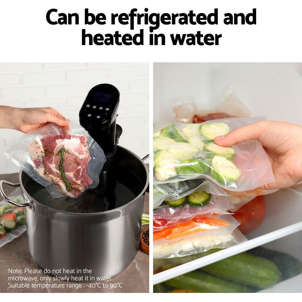 These two rolls of food vacuum sealer bags are perfect for keeping your food fresh for longer! The bags are designed to prevent spoilage by extracting all the air from inside the bag. Made from safe and odourless materials, these bags are tough and not easy to tear. The multi-layer bag design ensures maximum air extraction and is suitable for fruits, meat, cereals, vegetables, and more. The bags are compatible with most vacuum sealer machines, ensuring a strong seal and no air leakage. The diamond-shaped embossing makes them resistant to high temperatures, and they can be refrigerated and frozen. However, they cannot be heated in the microwave; only slowly heat the bags in water. The temperature range for use is -40 to 90 Celsius degrees. Reduce your food waste and keep your fridge stocked with our vacuum food sealer bags.