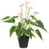 Introducing this durable, everlasting Peace Lily plant, handcrafted to perfection. It gracefully blends realism with convenience. Starting at the vibrant silky smooth leaves. Each energizing leaf boasts an exciting variety of sizes and fresh natural green tones. This pet and child safe plant is a relaxing compliment to any décor from modern to traditional with its multiple sleek, wavy, heart-shaped leaves. With the addition of veins, the layered, intricately detailed design gifts texture and visual interest to any empty space, shelf, or corner. Color-contrasting, textured, DIY-friendly, flexible stems invite touch for a multi-sensorial, interactive experience. The elegant Peace Lily flowers steal the show - with their exciting pink-white petals, wispy green tips, and textured pink-white pistils. Realistic no-mess cemented soil moss and a playful root system at the base of the minimalistic plastic pot completes the masterpiece. It's no wonder our most common reaction is 'is that real?'
