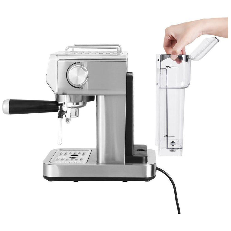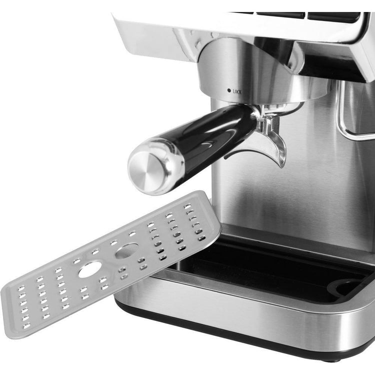Get a head start on the day with your first cup of coffee from a Devanti Espresso Machine. Pour the perfect shot every time with easy-to-use controls, a powerful 20-bar pressure pump, and an instant heat system. The machine comes with single and double-shot coffee filters, a diecast aluminium portafilter and a dual coffee tamper/spoon - everything you need for a fresh cup. The convenient mug warmer keeps your cups at the perfect temperature as you froth your milk just the way you like it. Easily fill the machine from the removable water tank and clean it up with the removable drip tray. Its space-saving design means it won't take up your entire benchtop, giving you plenty of room for your other kitchen essentials. Relax and enjoy your favourite coffee from the comfort of your home with your very own Devanti Espresso Machine.