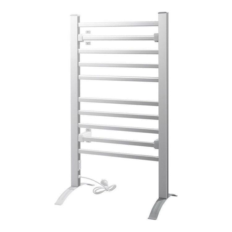 Imagine wrapping yourself up with a warm, dry and fluffy towel after showering in the cold winter. This can easily become your reality with our Devanti Heated Towel Rail. This towel rail only takes three to five minutes to heat up to a constant temperature range of 40C to 50C, and quickly heats your towels. It is easy to install and the versatile design allows wall-mounted or freestanding use to suit your requirements. If you choose to leave it freestanding, you can just plug it in and it is ready to use. This gives you flexibility on where you can place the towel rail so that you are not just limited to the bathroom. You can use it in your bedroom to warm up your clothes before getting changed or in your laundry to dry washed clothing. Best of all, this towel rail has ample space with 10 rungs so that your whole family can experience toasty warm towels and clothes throughout the cold season. Enjoy warmth in more ways than one with our heated towel rail.