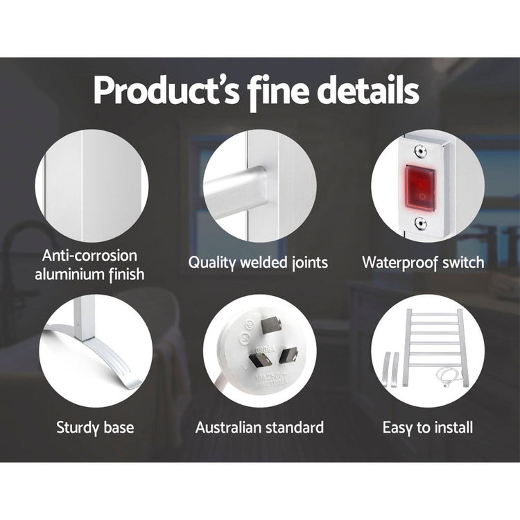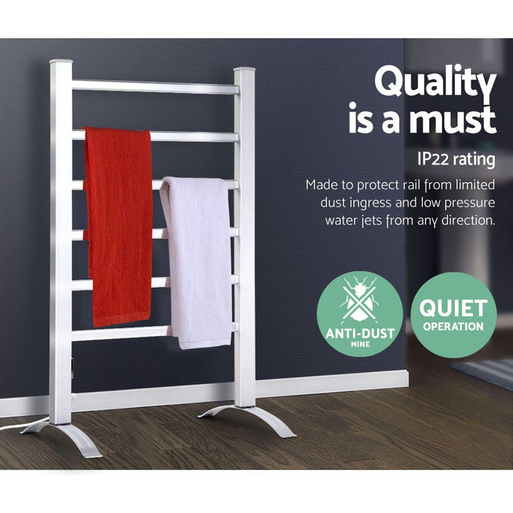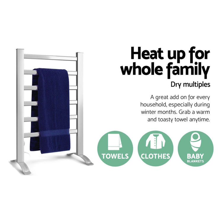 Imagine wrapping yourself up with a warm,dry and fluffy towel after a shower on a cold wintery day.This towel rail heat up as fast as 3 minutes,guaranteeing you with a warm towel or clothing every time.This is the easiest towel rail in the market to install due to its free standing style that does not require professional installation.Just plug in and ready to use.Made of anti-corrosion aluminium,it is a bold modern piece that will complement your bathroom.Designed to stay constantly at 40- 50degrees,giving you the warmness that you're after on every chilly day.