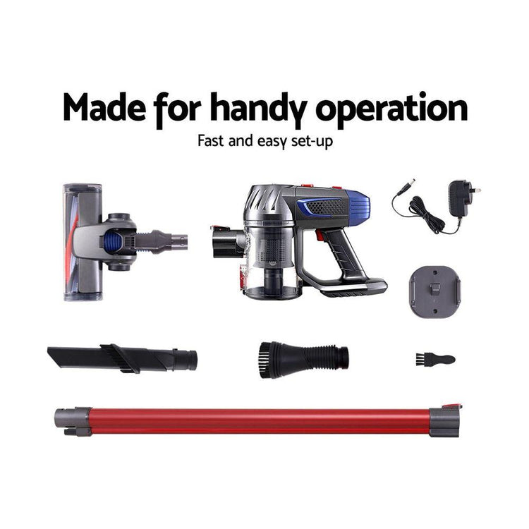 Our Devanti Handstick Vacuum Cleaner gives you the freedom to use it in any tight space or where spot cleaning needs to be done without lugging a big machine behind. Its powerful 150W 30000rpm motorised head has a steady suction power of up to 10000Pa and comes with two-speed suction for more vacuuming options. The 160° swivelling head can also be fitted with brush or crevice nozzles for different types of surface and zone cleaning that allows it to pick up dirt and debris easily. That makes the vacuum ideal for cleaning carpets, curtains, shelves, soft furnishings, vehicle interiors and delicate objects as well as vacuuming ceiling, corners, niches and gaps. The one-handed design is lightweight and bagless. All collected dirt and debris pass through a washable and reusable HEPA filter that eliminates up to 99.97% of dust and allergens. Not least, the vacuum cleaner can work its magic for up to 35 minutes of continuous running time on low speed (25 minutes on high speed) with the rechargeable 2000mAh lithium-ion battery.