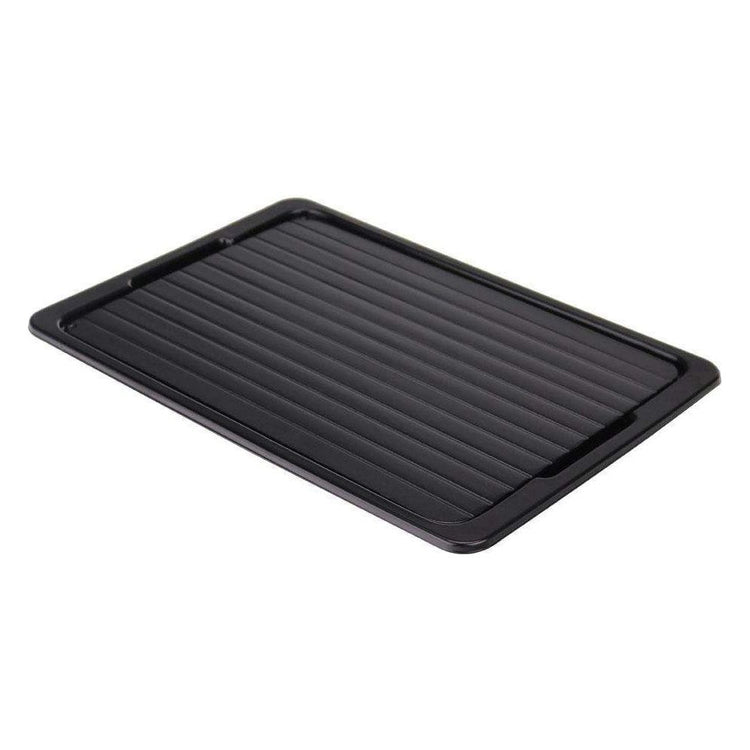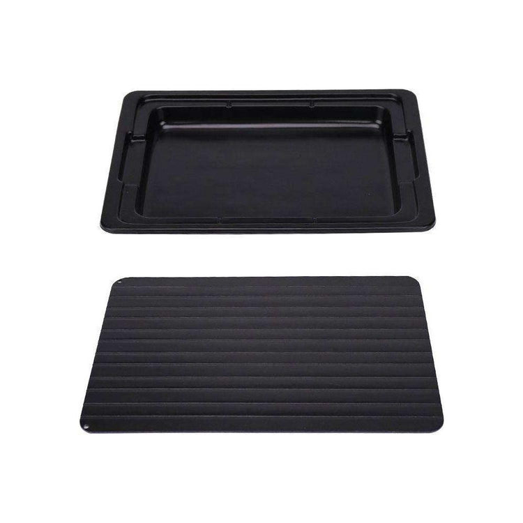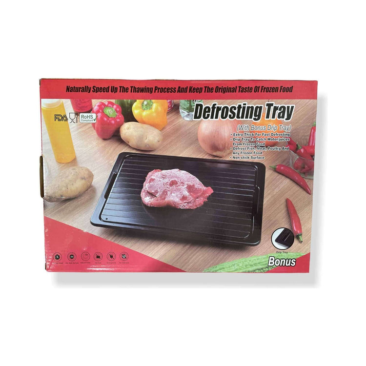 This medium Fast Defrosting Meat Tray with water tray box, is FDA approved for quality standards. It is made of a premium aluminium which draws the cold from frozen food in minutes. Aluminium is a good conductor of heat, hence thawing meats in minutes.