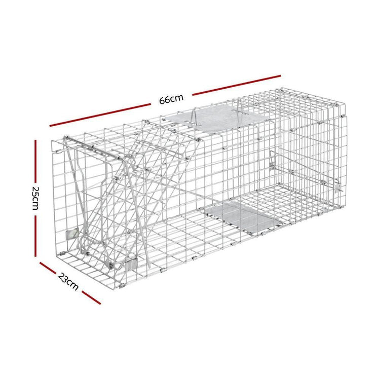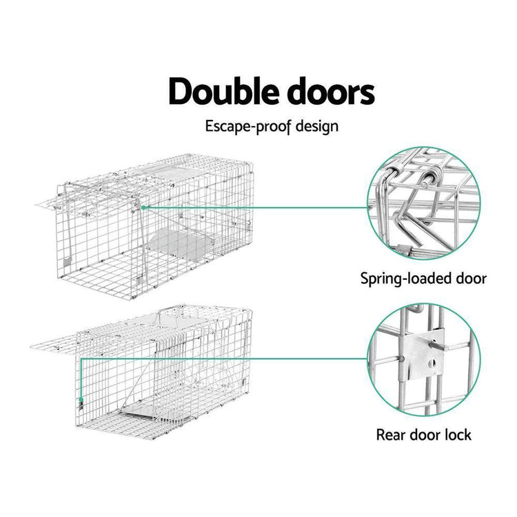 Made from quality rust resistant galvanised iron wire, this humane animal trap cage is built to last for years. Featuring spring loaded door trap with protected handle and an automatic locking system that is swift in operation, this cage is designed to ensure safety of both animals and users. Perfect for removing pest animals in backyard and capturing pest alive. It has a collapsible design and can be folded away quickly for easy storage and transportation.