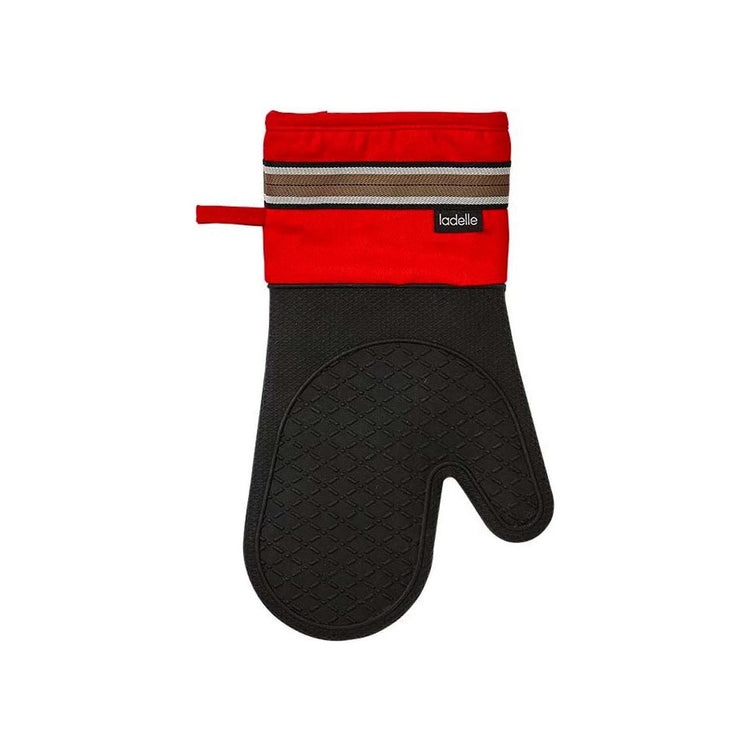 This Professional Series Red Silicone Oven Mitt 18 x 33 cm by Ladelle will give you a peace of mind while handling hot objects in the kitchen. It is a perfect kitchen accessory to safely handle hot ovens, stoves, and cookware. 100% AZO free dyes and made to European Quality Standards. It features a stylish quilted design in striking and contrasting colour tones of red, white, black, and brown that will bring a pop of fresh colours to your kitchen. It is made from high quality 100% Cotton/Rubber materials and Polyester Cotton filling.