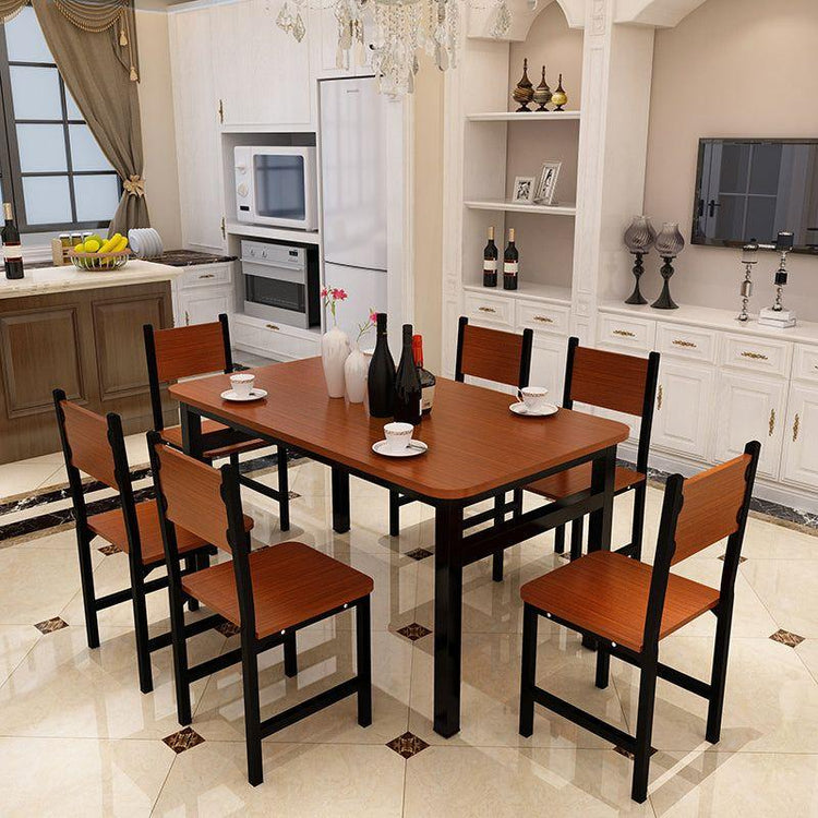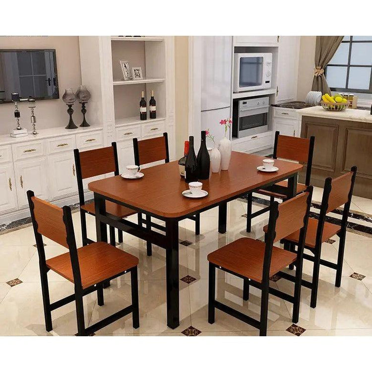 The 5-piece Dining Table & Chairs Set showcases a sleek and sophisticated design. This exceptional set effortlessly combines the comforting warmth of wood with the refined elegance of steel, adding a touch of style and class to your home decor. Its versatile design seamlessly blends with various home styles, offering unmatched multi-functional versatility.