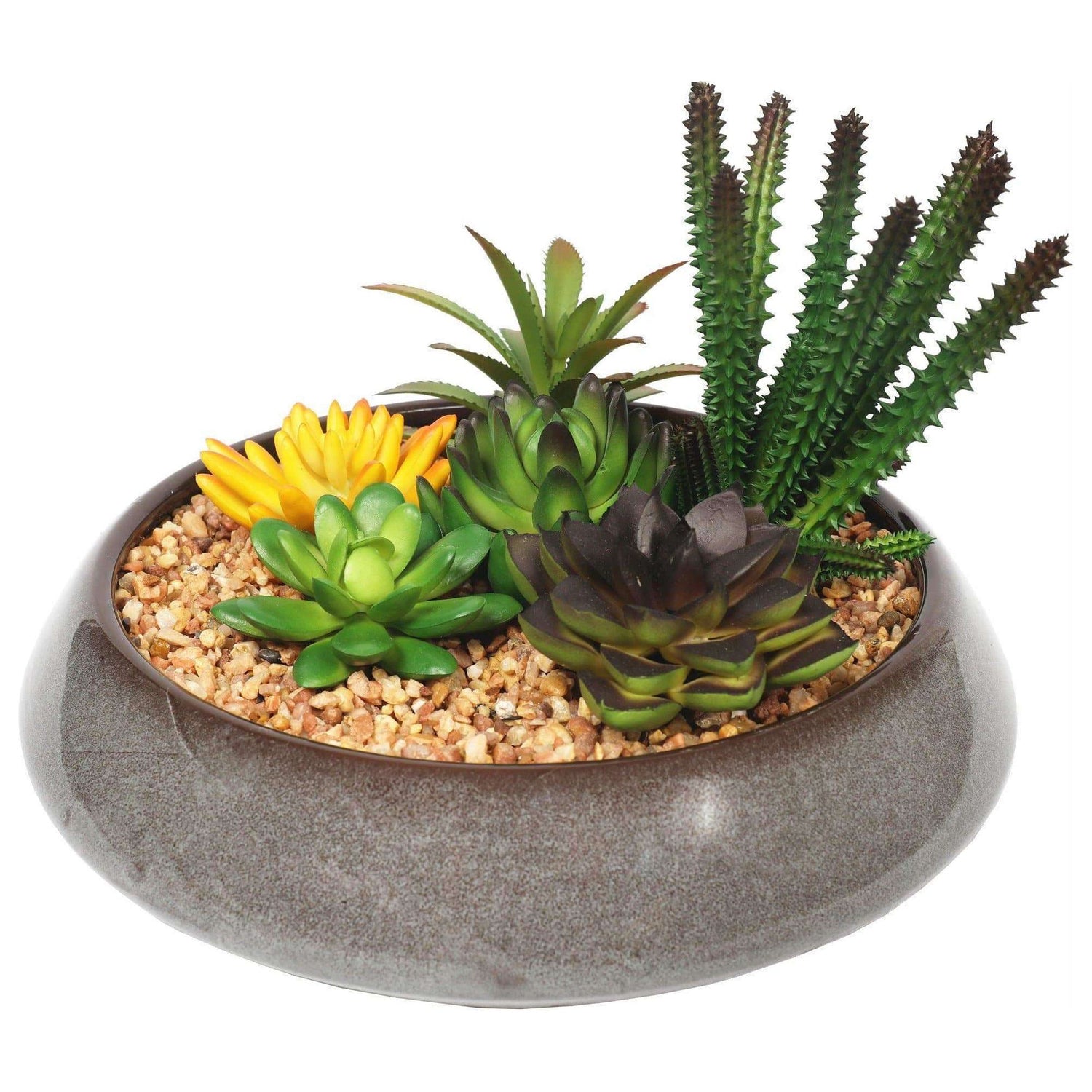 Potted Artificial Succulents With Round Decorative Bowl 19cm