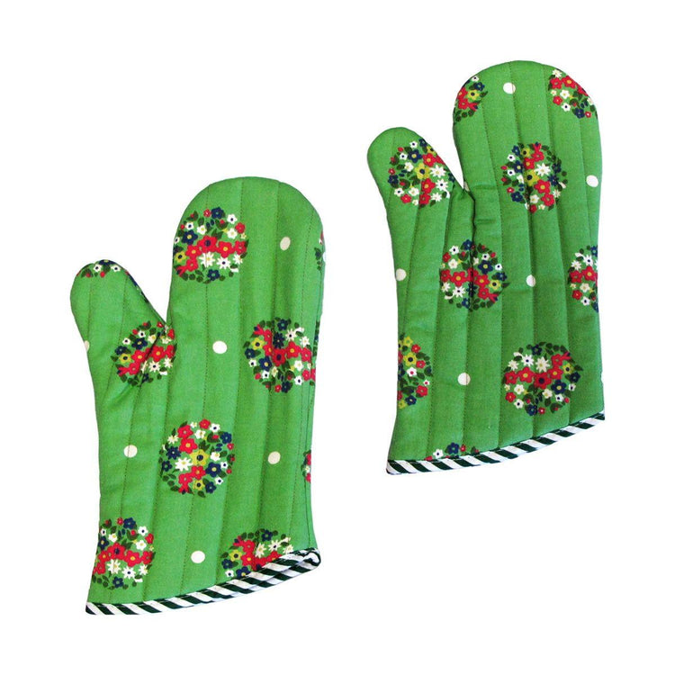 Set of 2 100% Cotton Printed Oven Mitts 34 x 15 cm Green Blossom