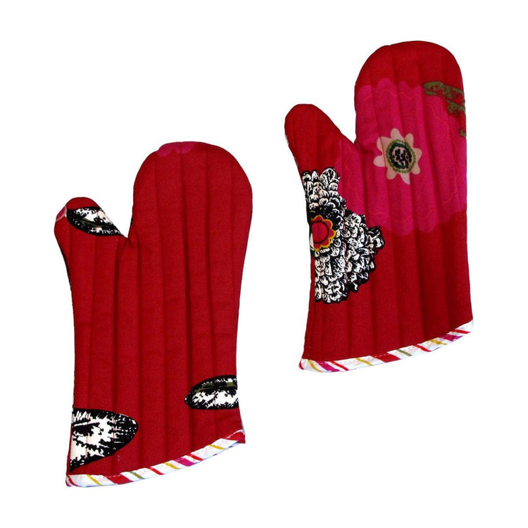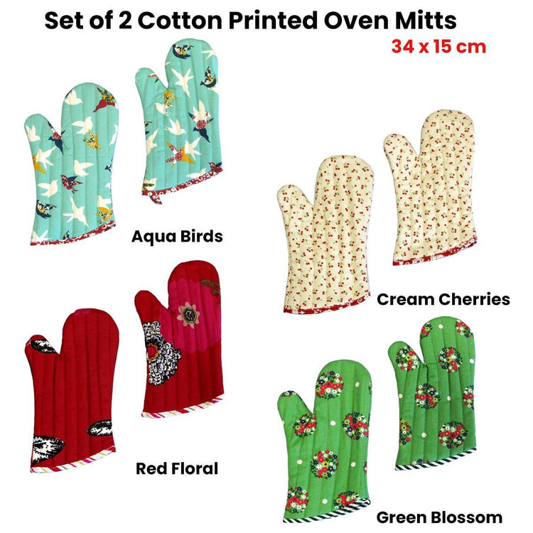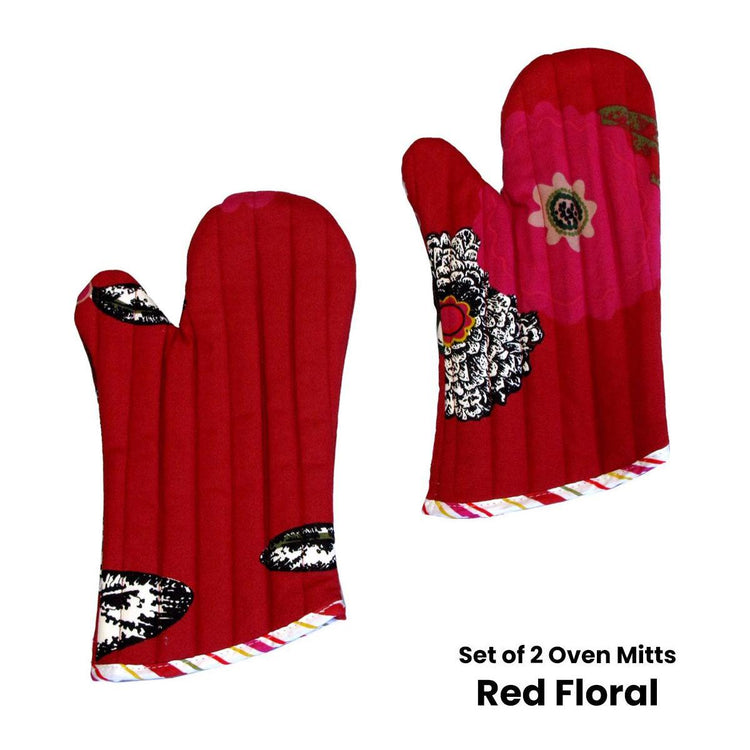 Set of 2 100% Cotton Printed Oven Mitts 34 x 15 cm Red Floral