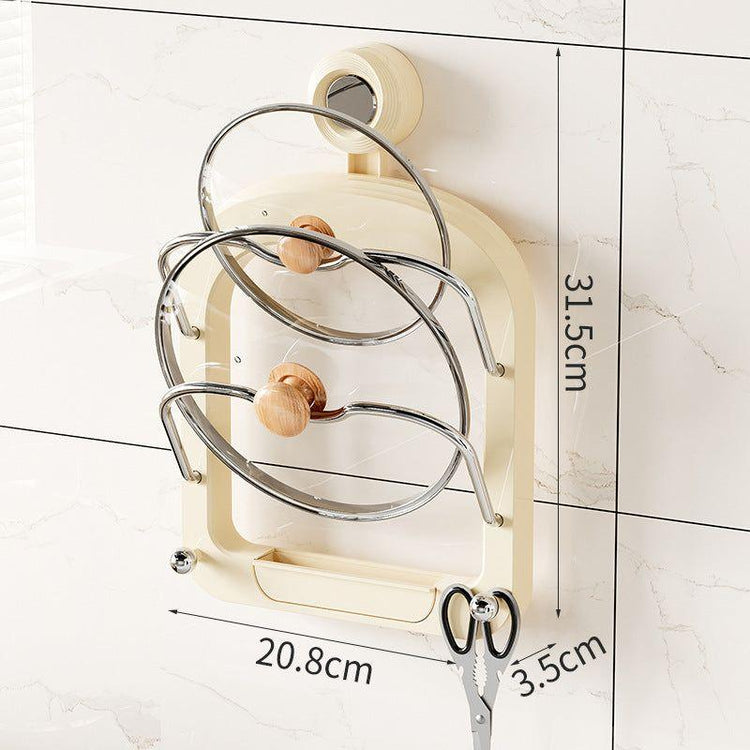 Wall-Mounted Pot Lid Organizer Rack - Kitchen Storage Holder with Adhesive Mount (31.5 x 20.8 x 3.5 cm)