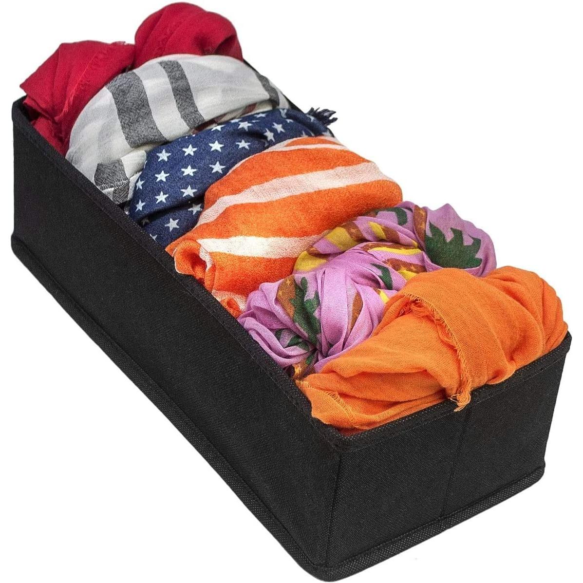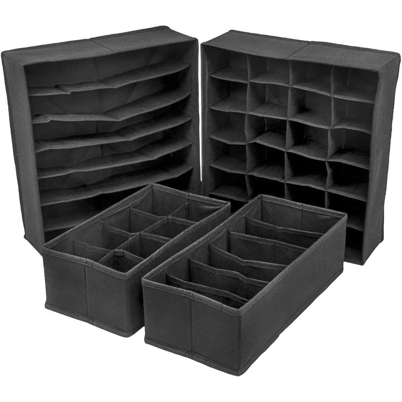 - 4-piece foldable organizer set (black) : Provides attractive, lightweight solution to many personal storage needs. Neatly store and classify underwear, socks, neck ties, bra, etc.