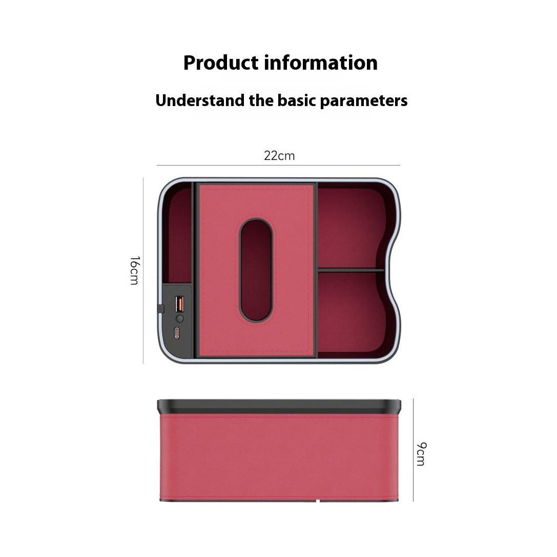 Volcano Red Car Armrest Storage Box with LED Ambient Light - Multifunctional Tissue Holder & Organizer for Car Interior