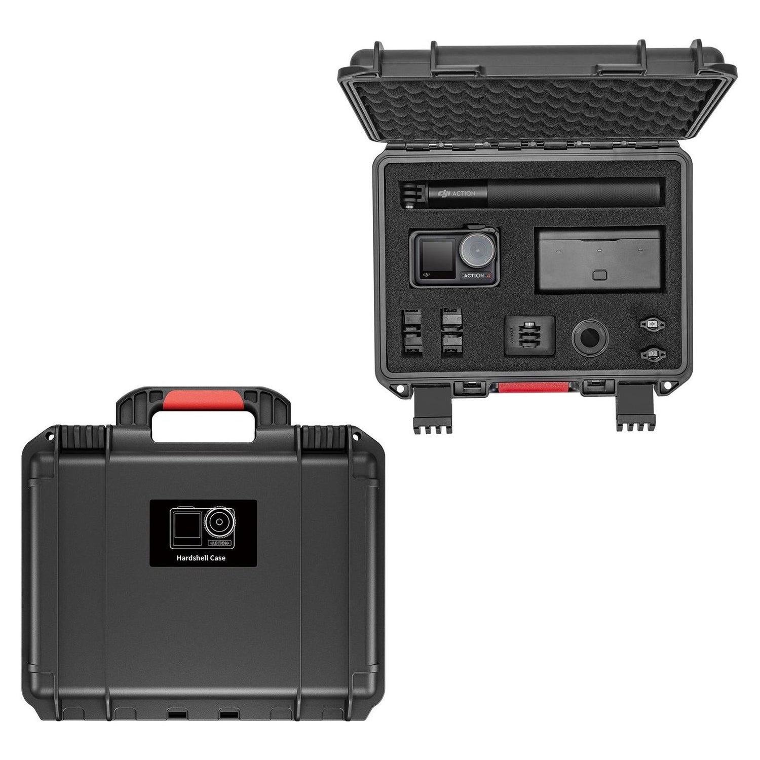• Specially designed for DJI ACTION 4, precisely fit the device, can accommodate: 1x ACTION 4 (with ACTION horizontal and vertical shooting protection frame), 1 x ACTION multi-functional battery storage box (with 3 x ACTION cold-resistant long-life batteries), 1 x 1.5m extension pole, 4 x quick release adapters, 1 x curved surface adhesive base, 1 x lens hood and 2 x locking screws.