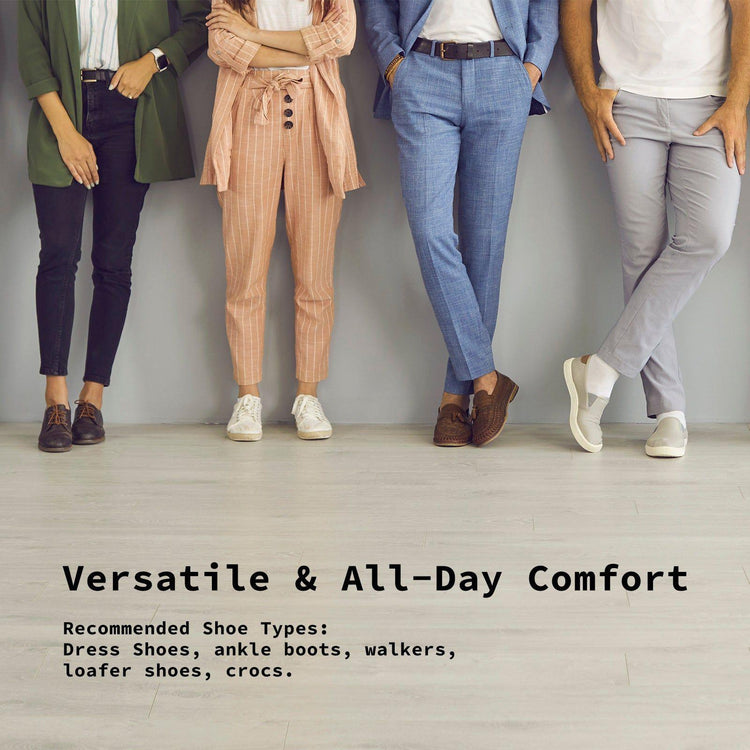 • Dress shoes, ankle boots, walkers, loafer shoes, crocs.
