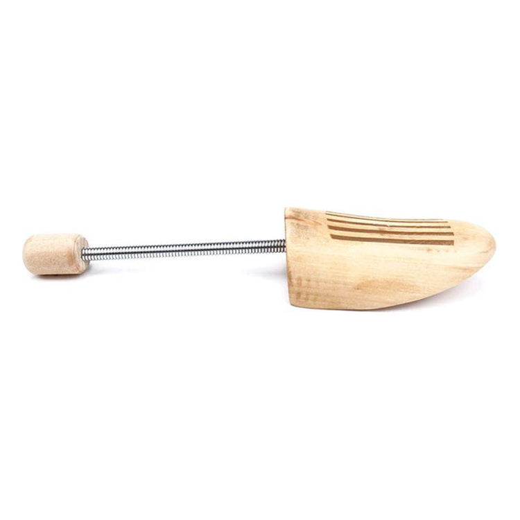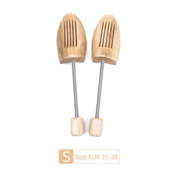 Small wooden spring shoe tree stretcher, suitable for sizes EUR 35-38. This shoe tree helps maintain the shape of your shoes, prevent creases, and absorb moisture, keeping them in great condition. The spring-loaded design makes it easy to adjust and insert into shoes of different shapes, ensuring a comfortable fit for a variety of shoe types. Crafted from high-quality wood for durability and performance.