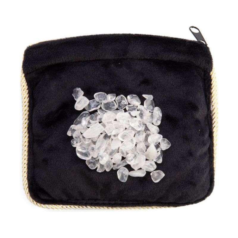 - 3 assorted stone types: amethyst, rock quartz (aka clear quartz), mixed stones