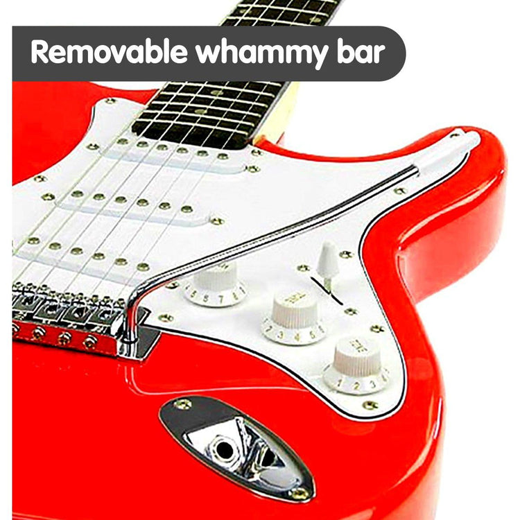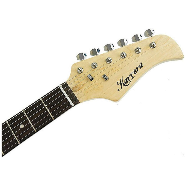 This A-grade, full-sized Karrera electric guitar has a fully adjustable bridge, tone and volume controls, a 3-layer pickguard, and a removable whammy bar. It's ideal for teens, students, or anyone who wants to hone their musical talents further. Play alone, start a band, or make your own music - with this electric guitar, the possibilities are endless!