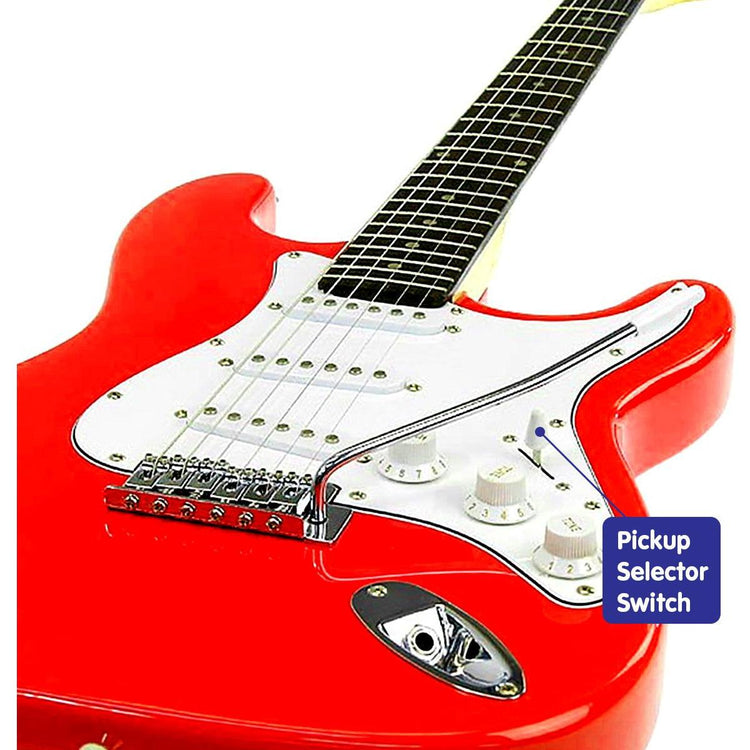 This 39-inch Karrera electric guitar has an adjustable neck truss rod, features not found on cheaper models. It also has a pickup selector switch and a removable whammy bar so you can experiment with your music!