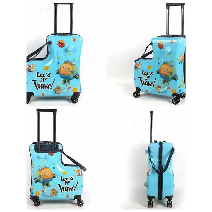Blue Kids Ride-On Luggage - 20-Inch Cartoon Travel Suitcase with Footrest, Durable Rolling Carry-On for Children
