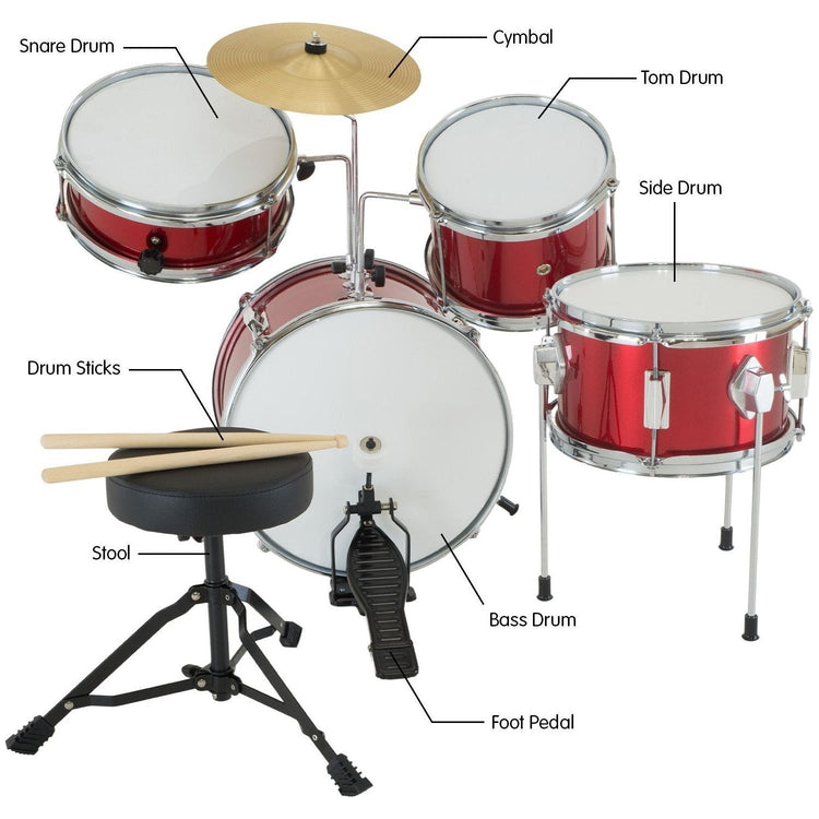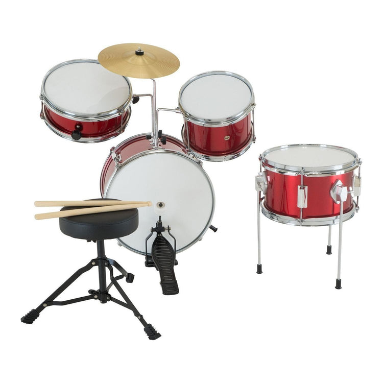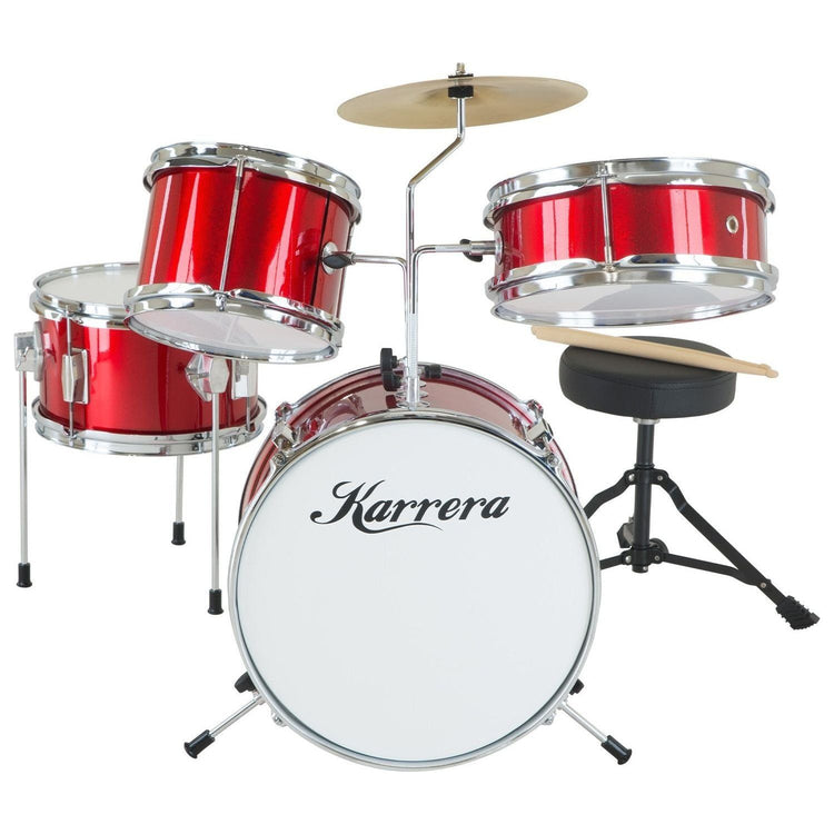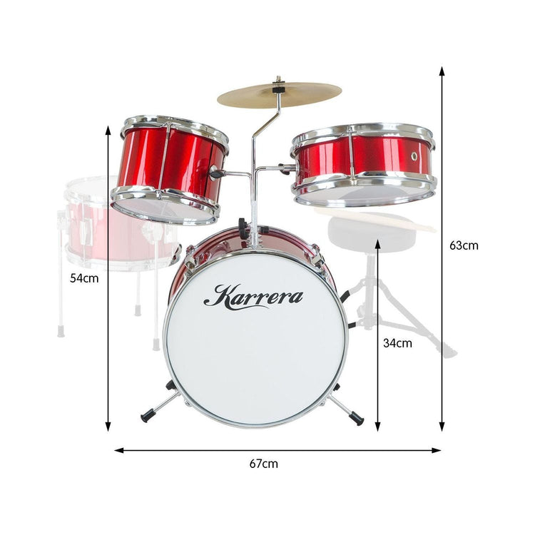 The Karrera Kids' Drum Kit is the perfect set for your budding little drummer! Made from high-quality materials, this kit comes complete with drumsticks, two tom drums, a bass drum, snare drum and cymbal.