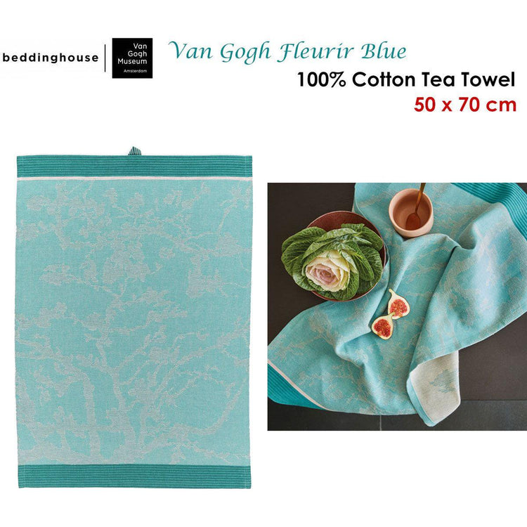 Add a traditional style in your kitchen with this classic Van Gogh Fleurir Blue Tea Towel 50 x 70 cm by Bedding House. Tea teal towel is not only good for drying dishes but a kitchen essential that has many uses. It can be used as a napkin or a placemat, bread bundle, or for handling baked dishes out of the oven. It features a lovely tree branch design printed in light hues of teal, blue, white, and silver that will add a decorative touch in your kitchen. It is made from durable and lightweight 100% Cotton with easy care properties.